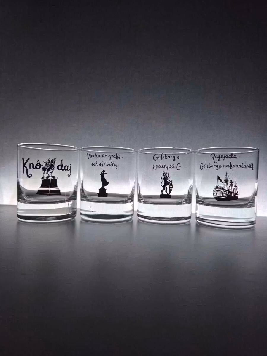 De är mer än bara glas. De är en hyllning till Göteborg, till språket, till humorn och till allt det som gör staden unik. Designade av unga entreprenörer med känsla för både kvalitet och lokalkärlek.